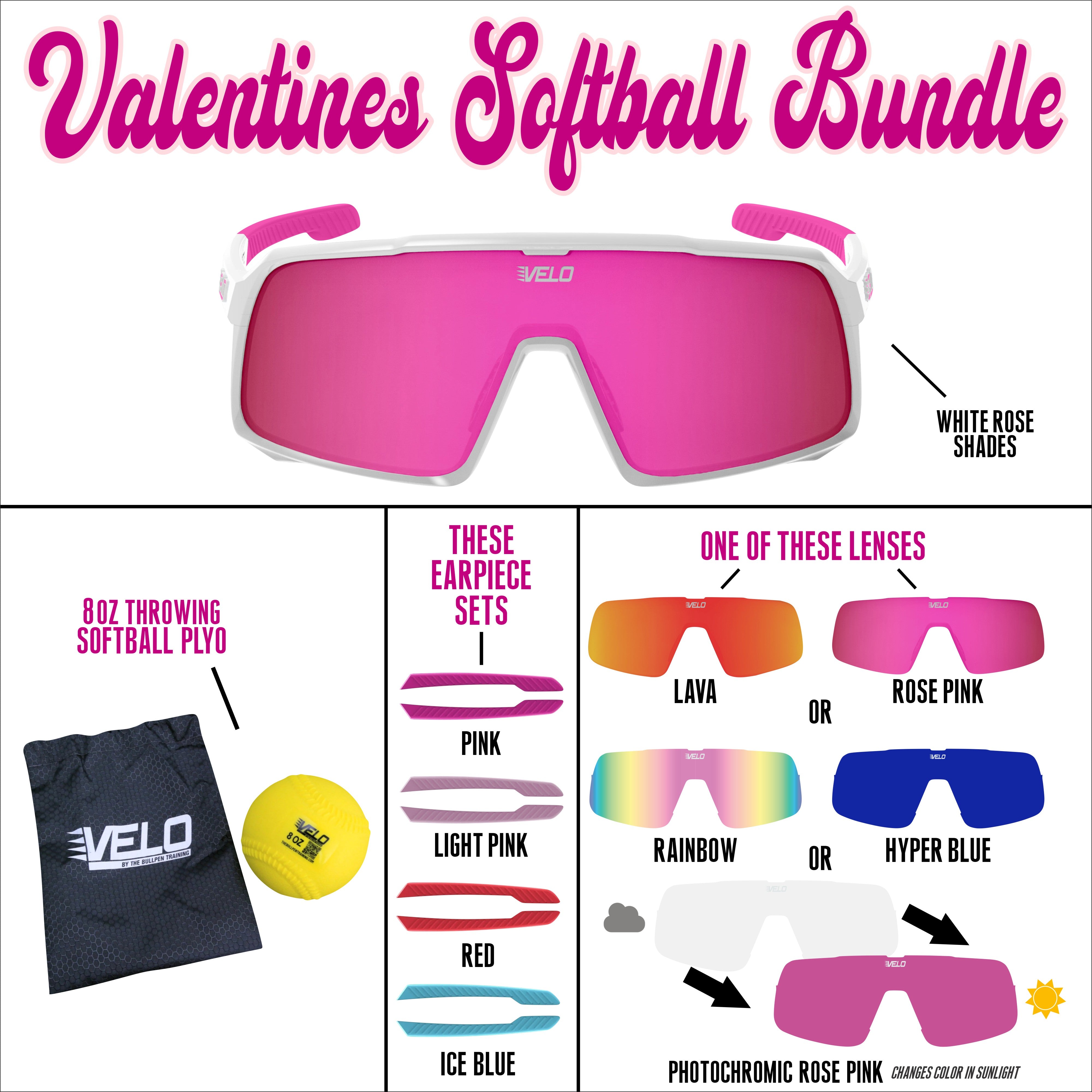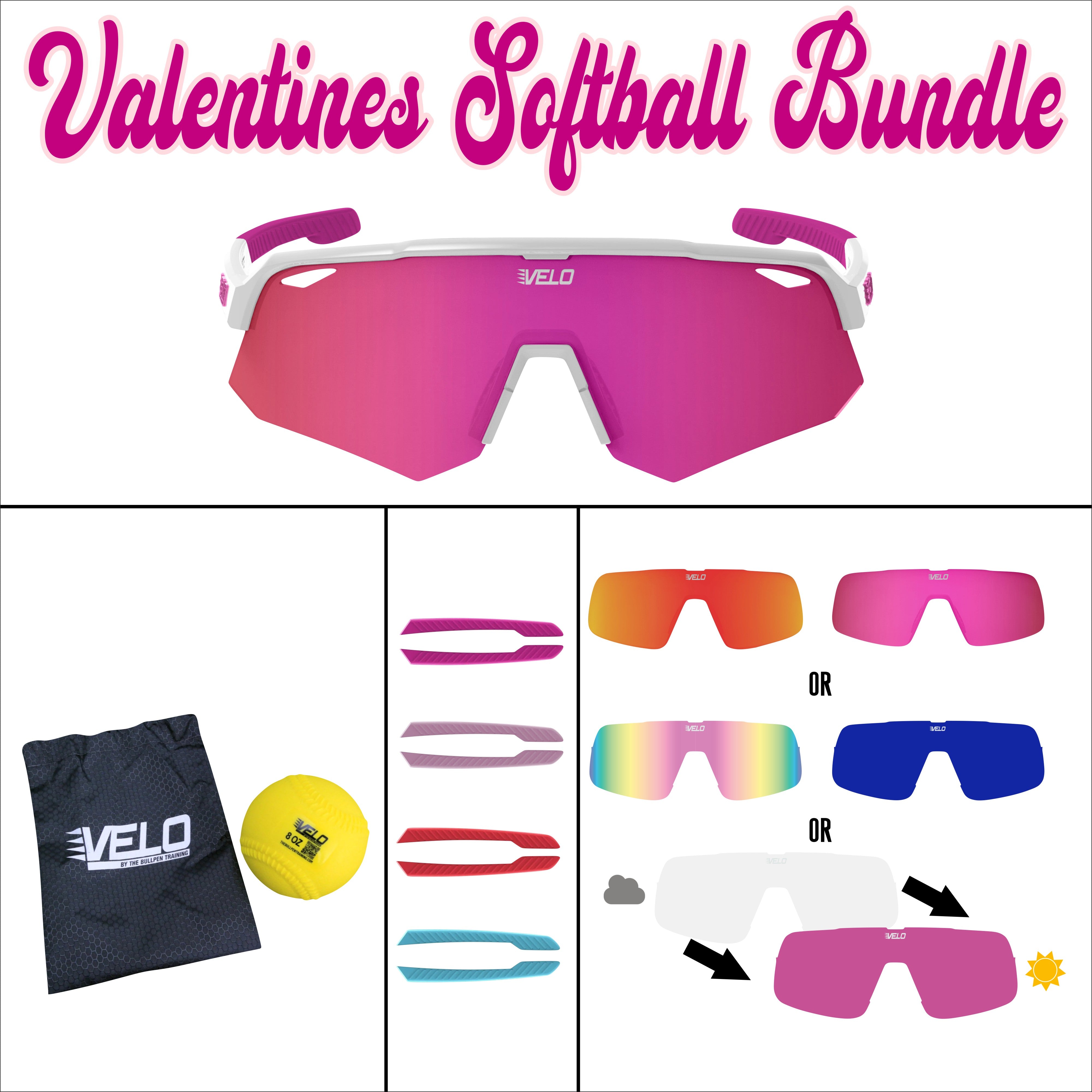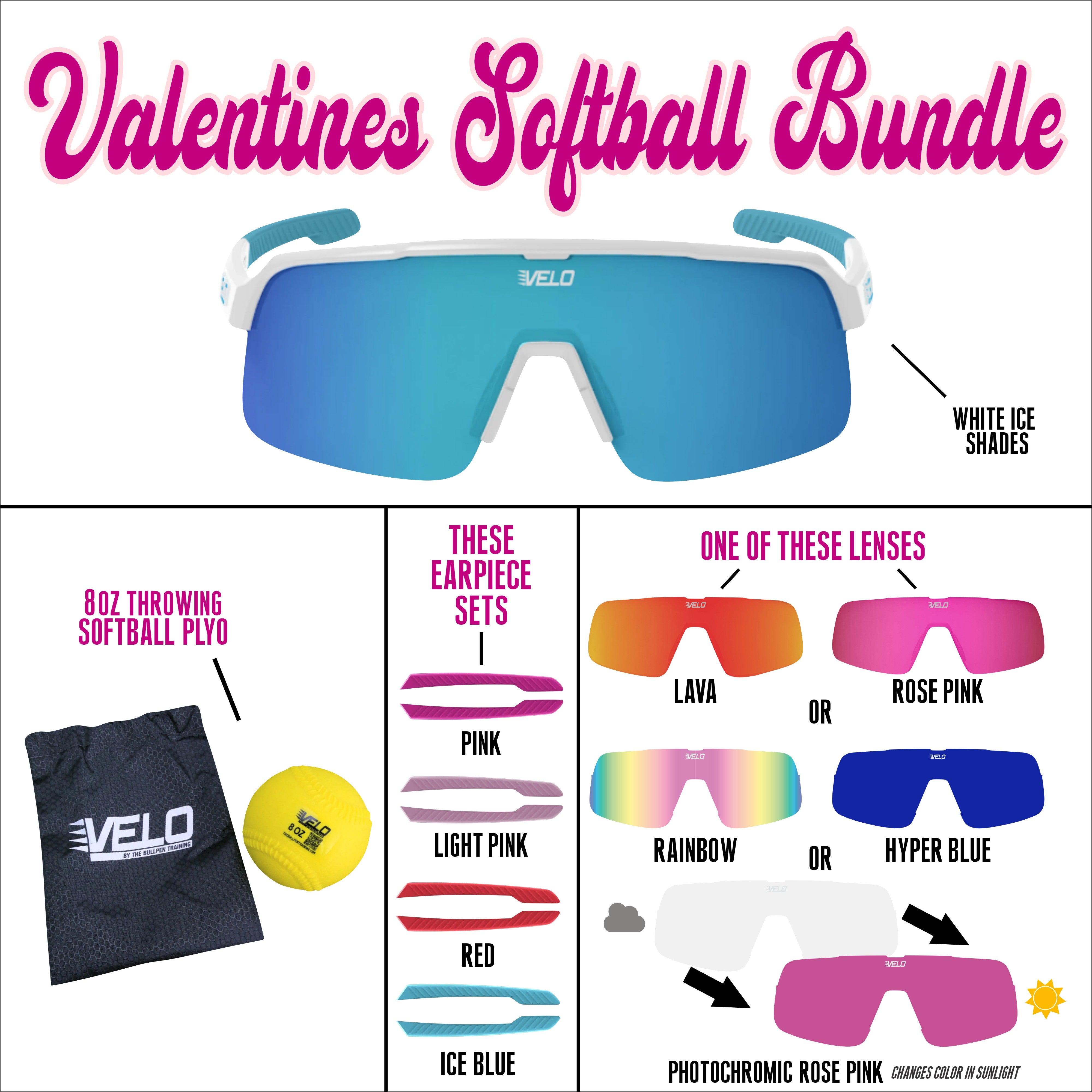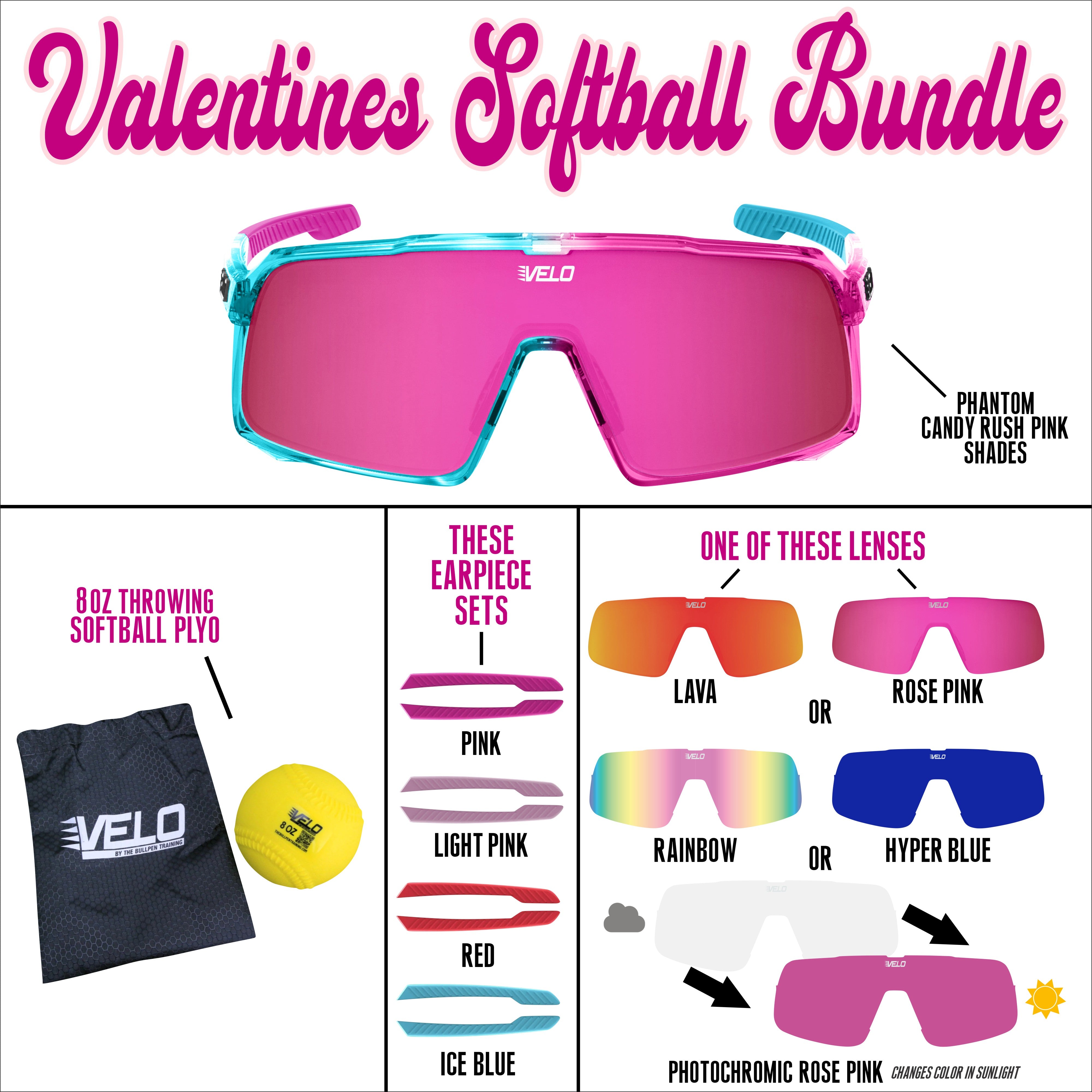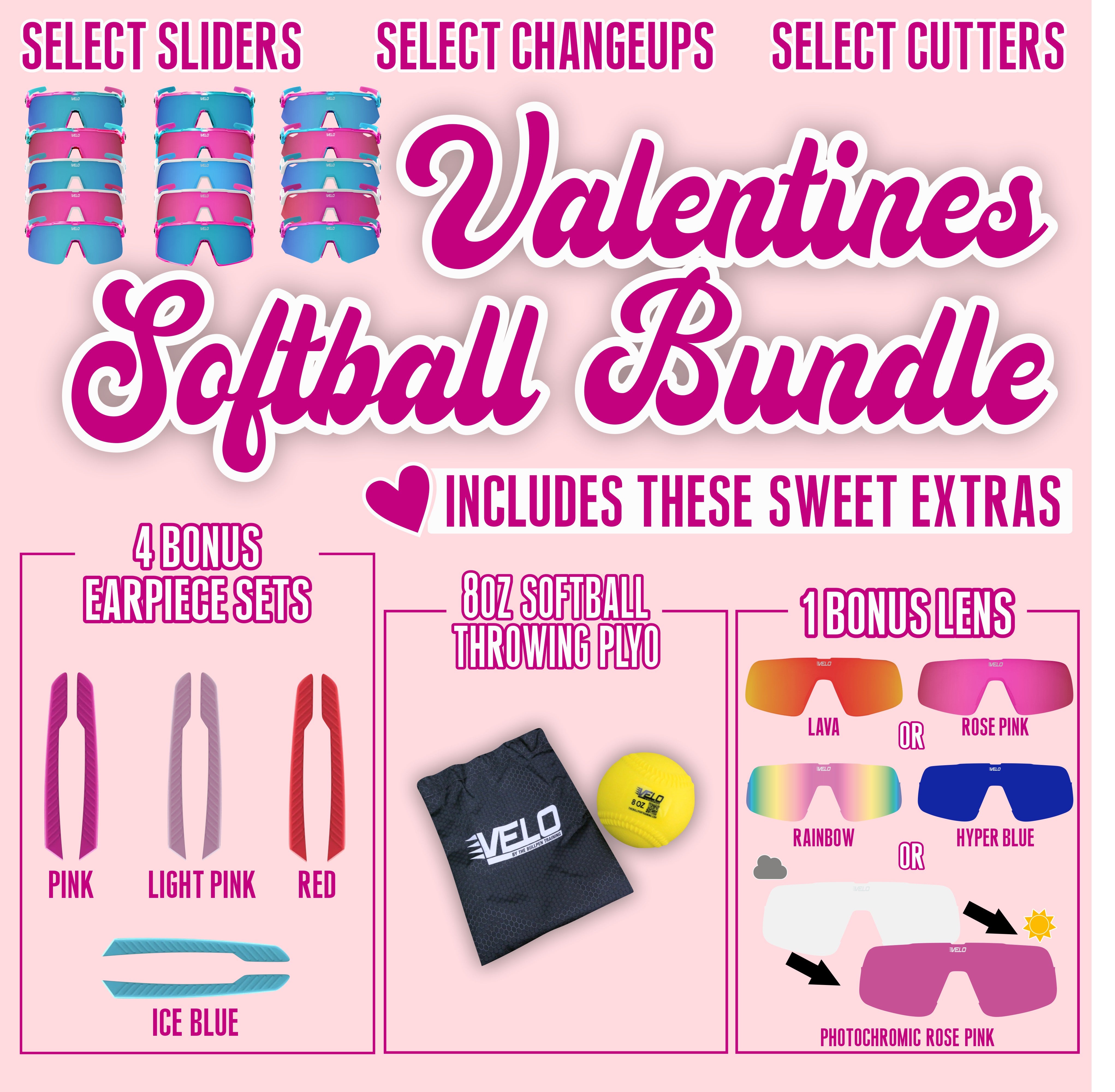 Valentines Softball Bundle - includes bonus earpiece sets, a bonus lens and a softball throwing plyo!