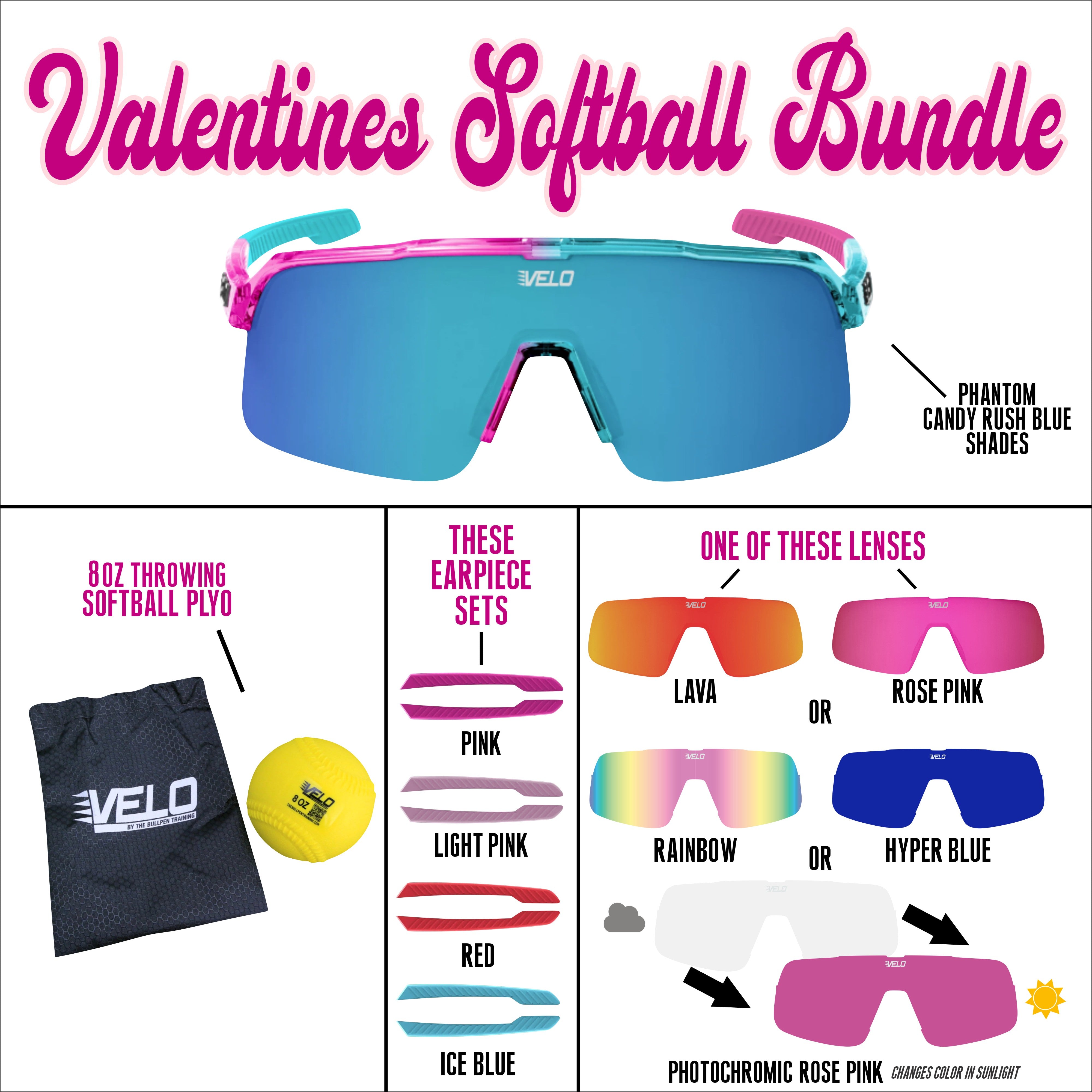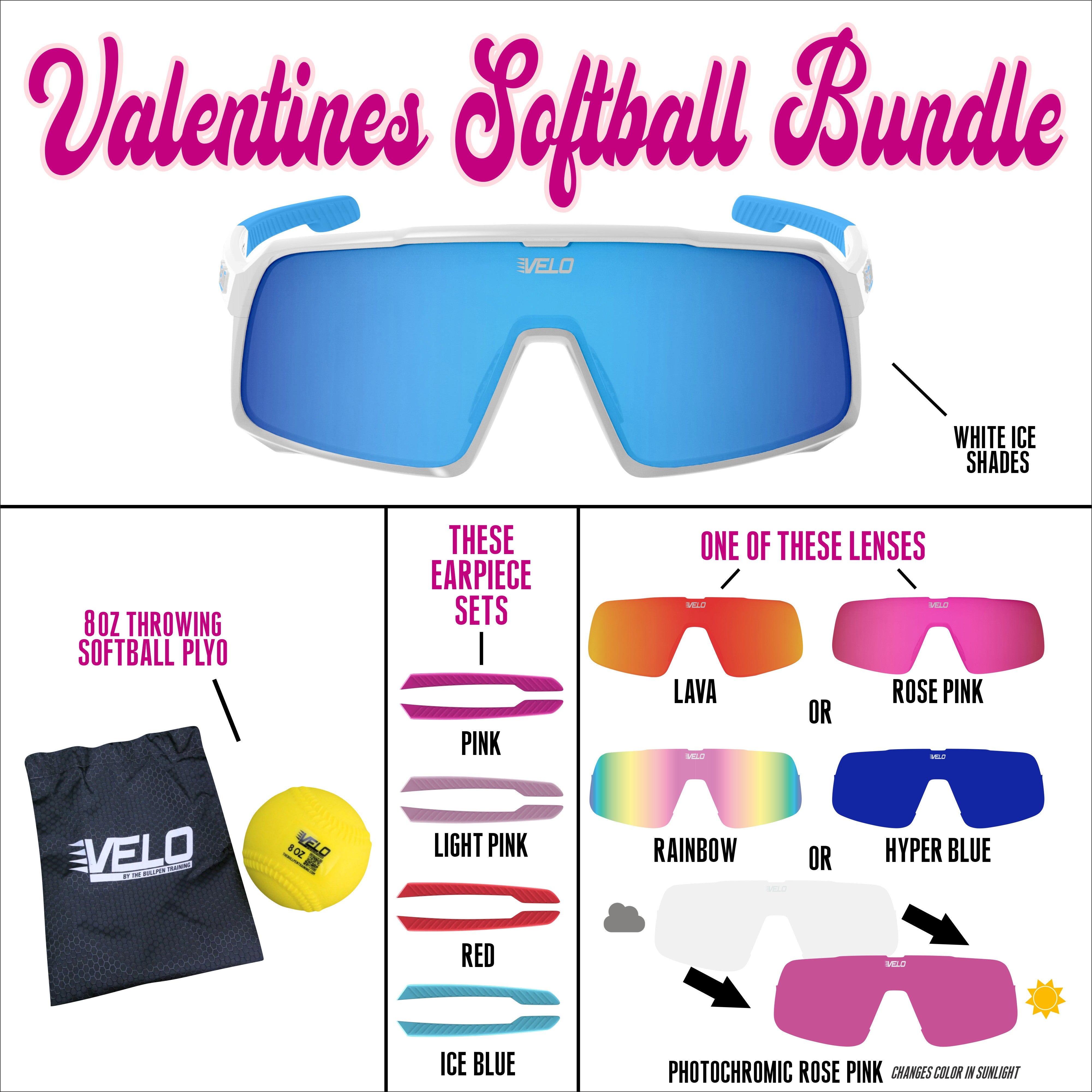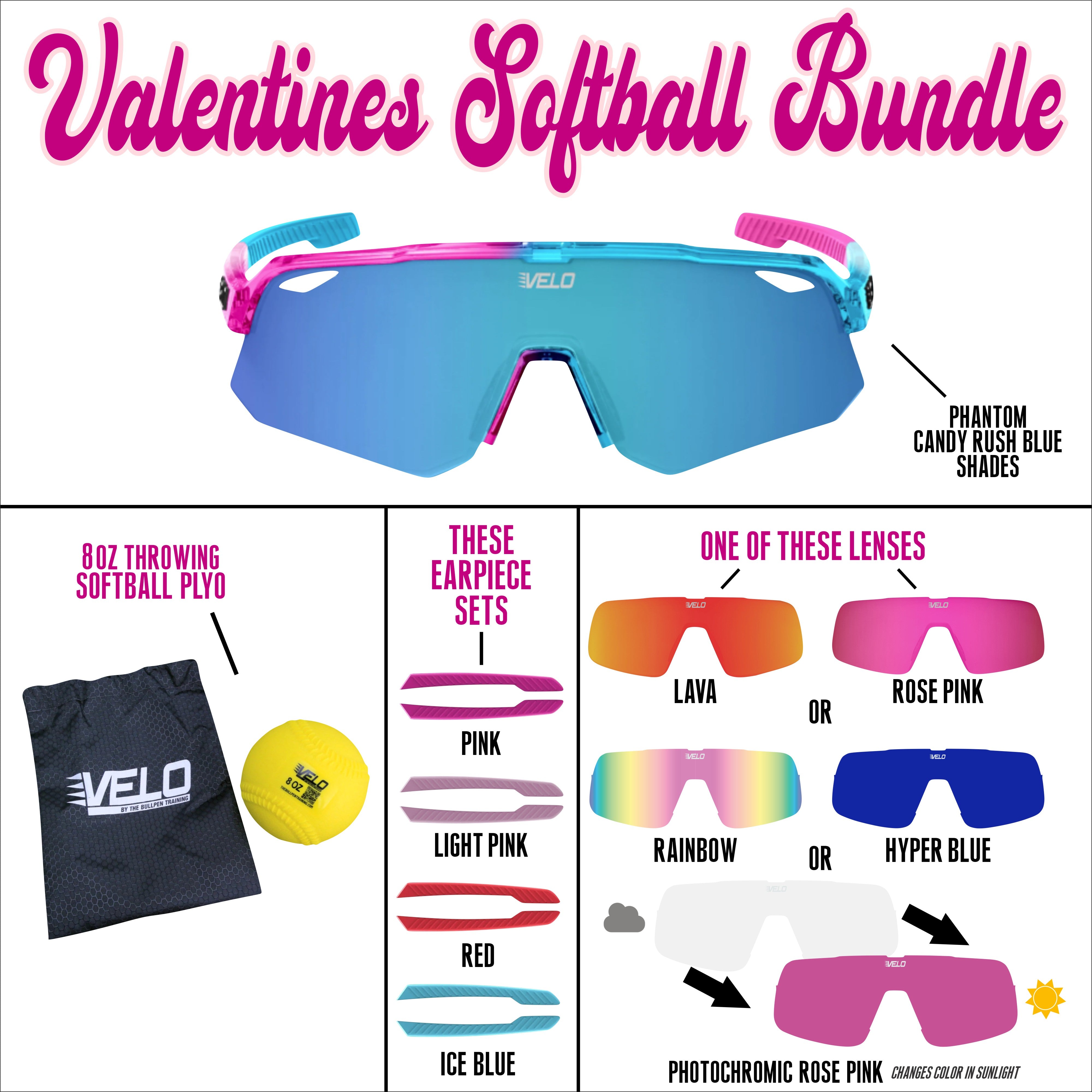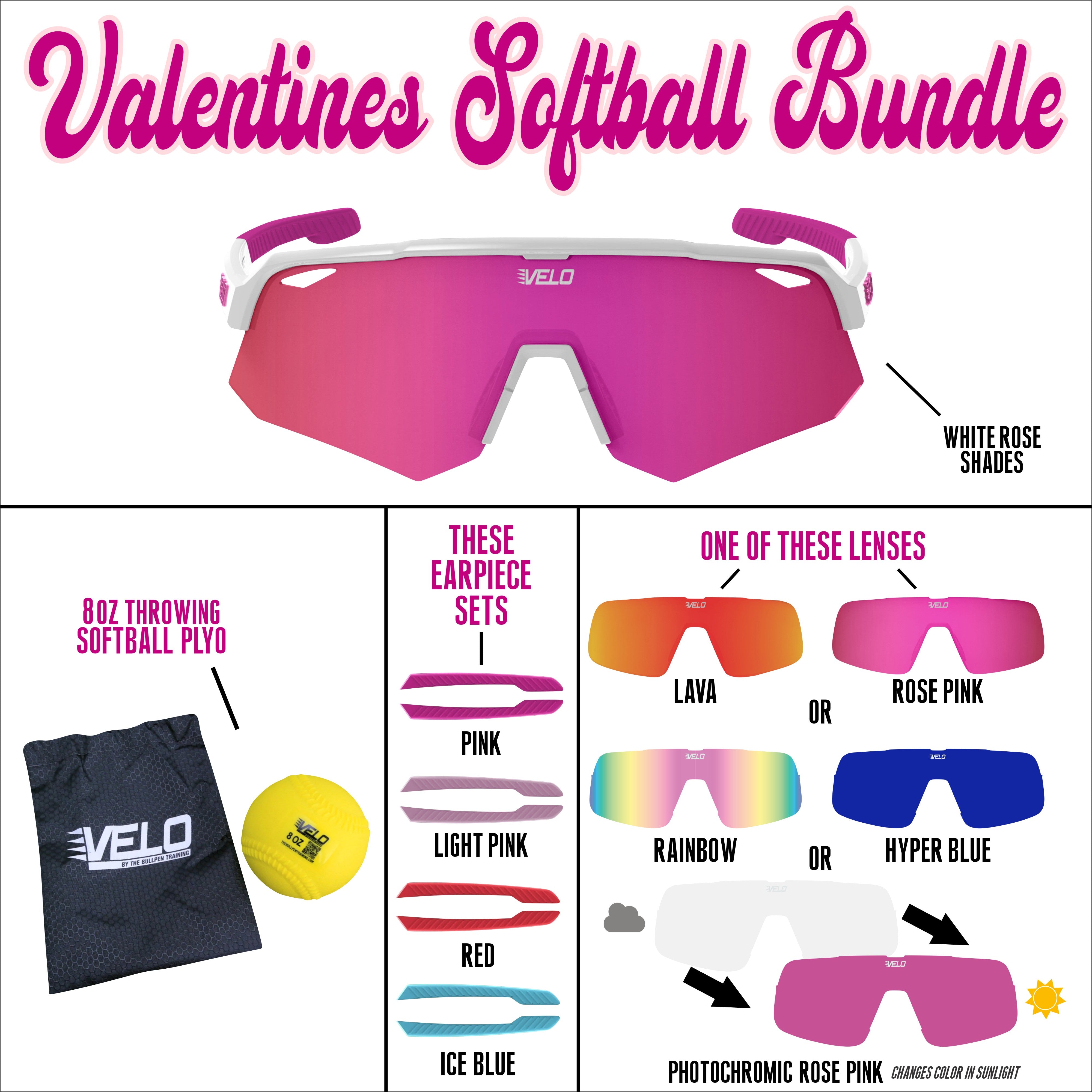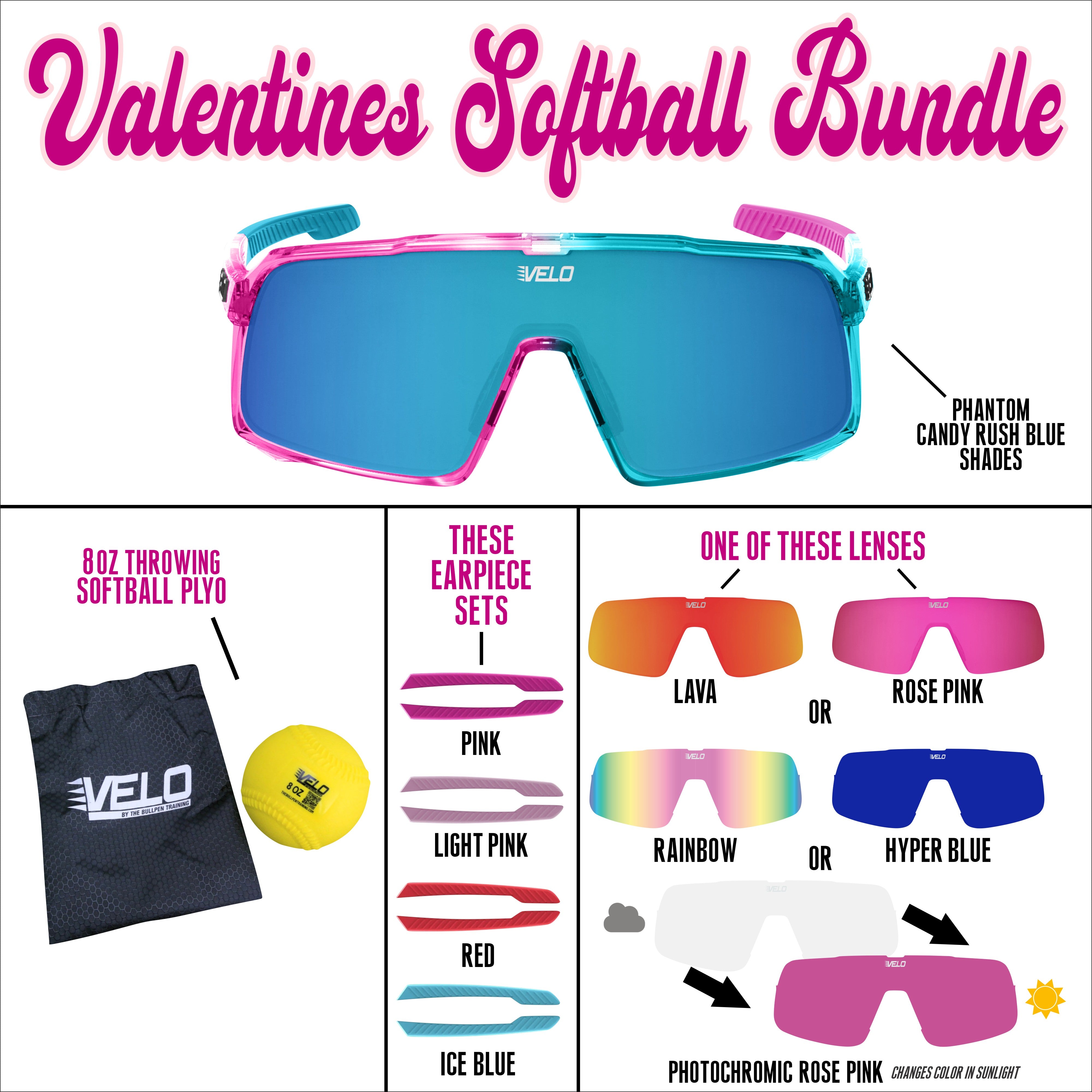 Valentines Softball Bundle - includes bonus earpiece sets, a bonus lens and a softball throwing plyo!