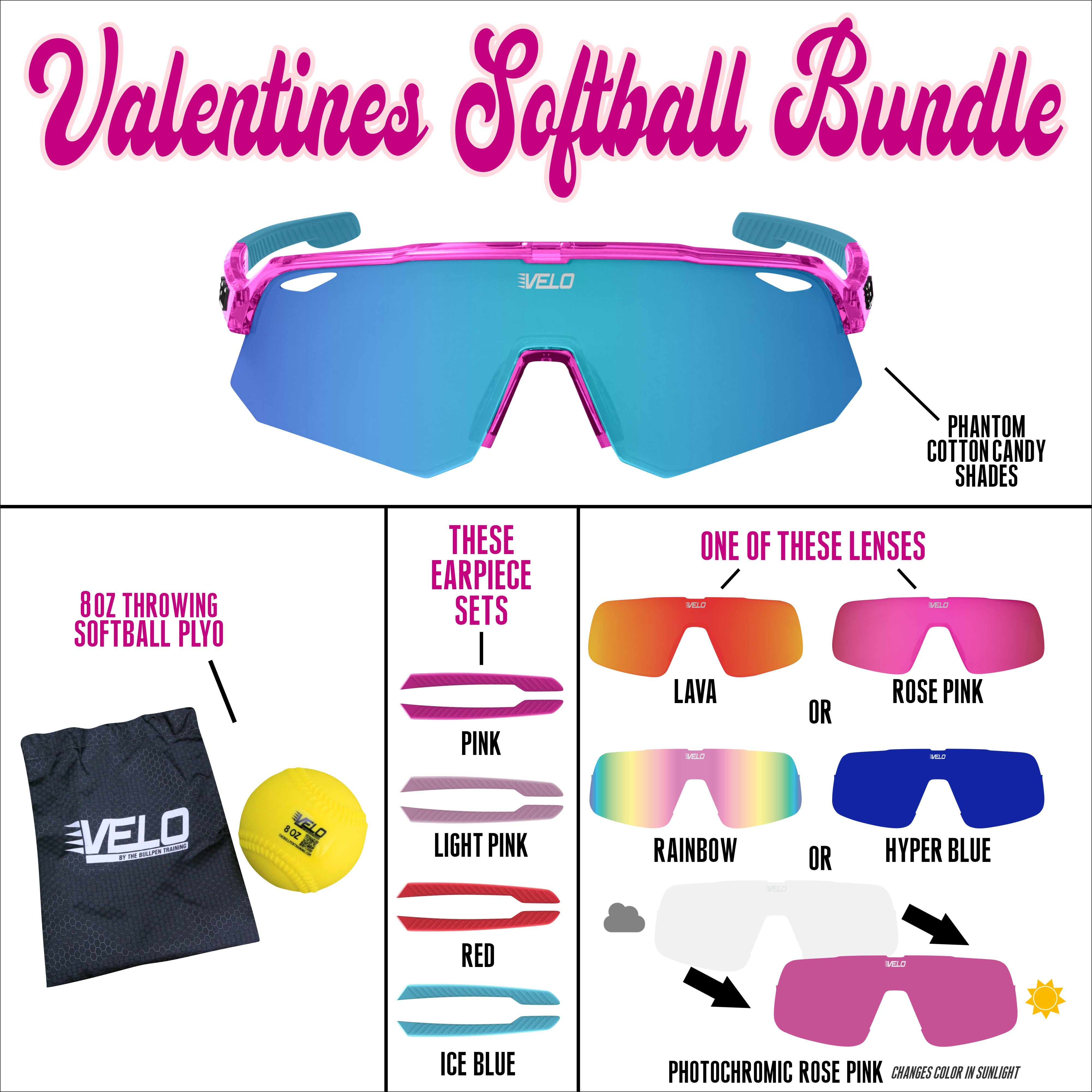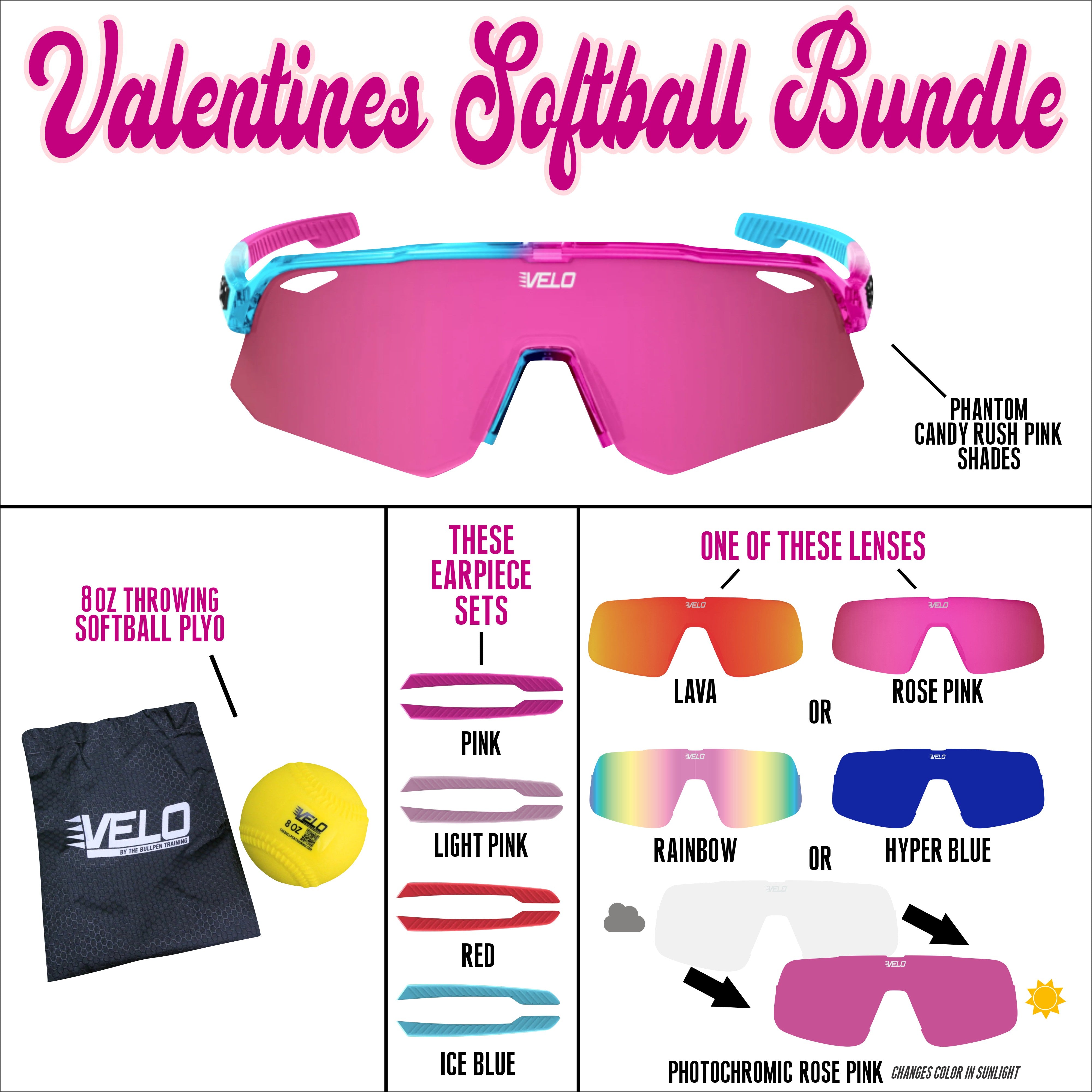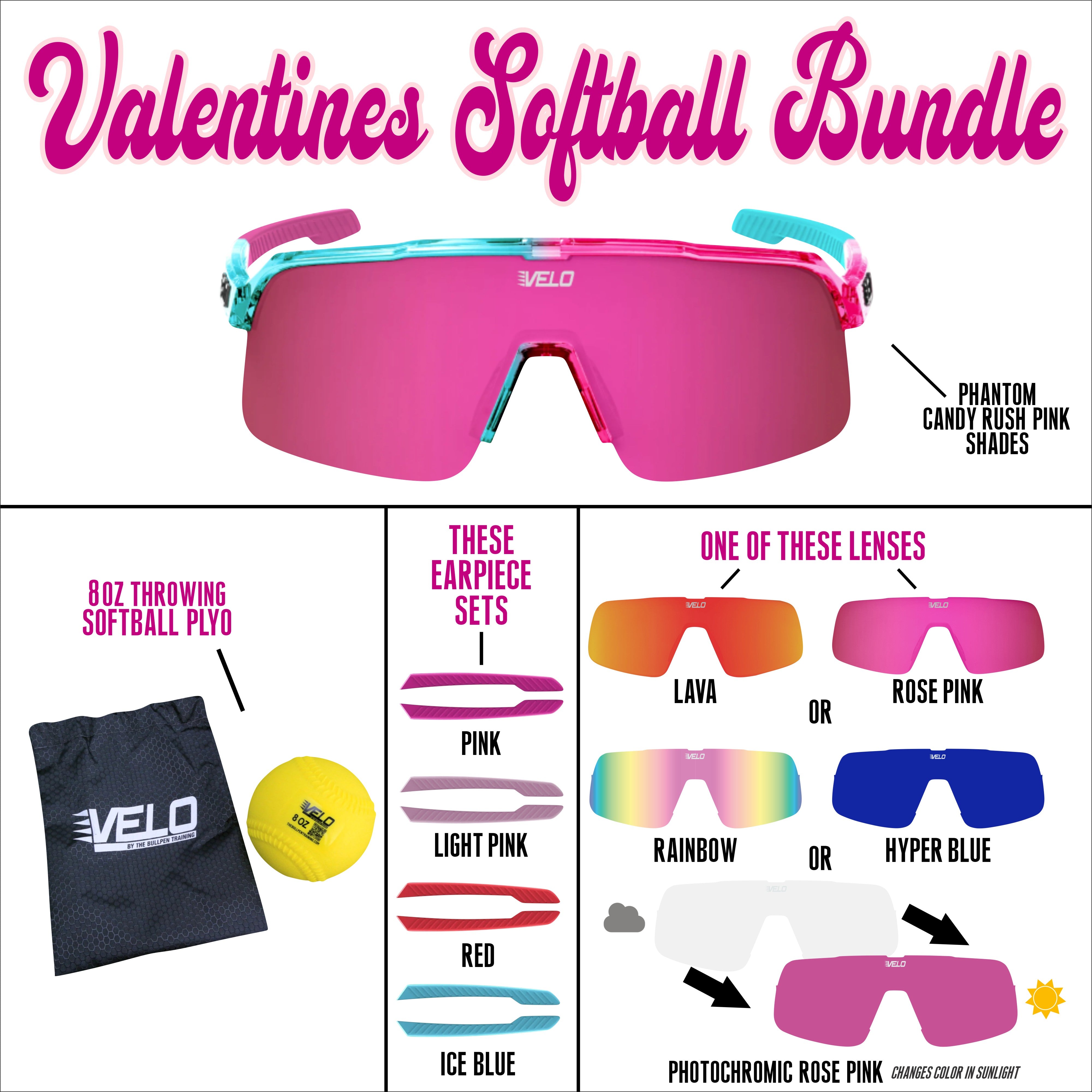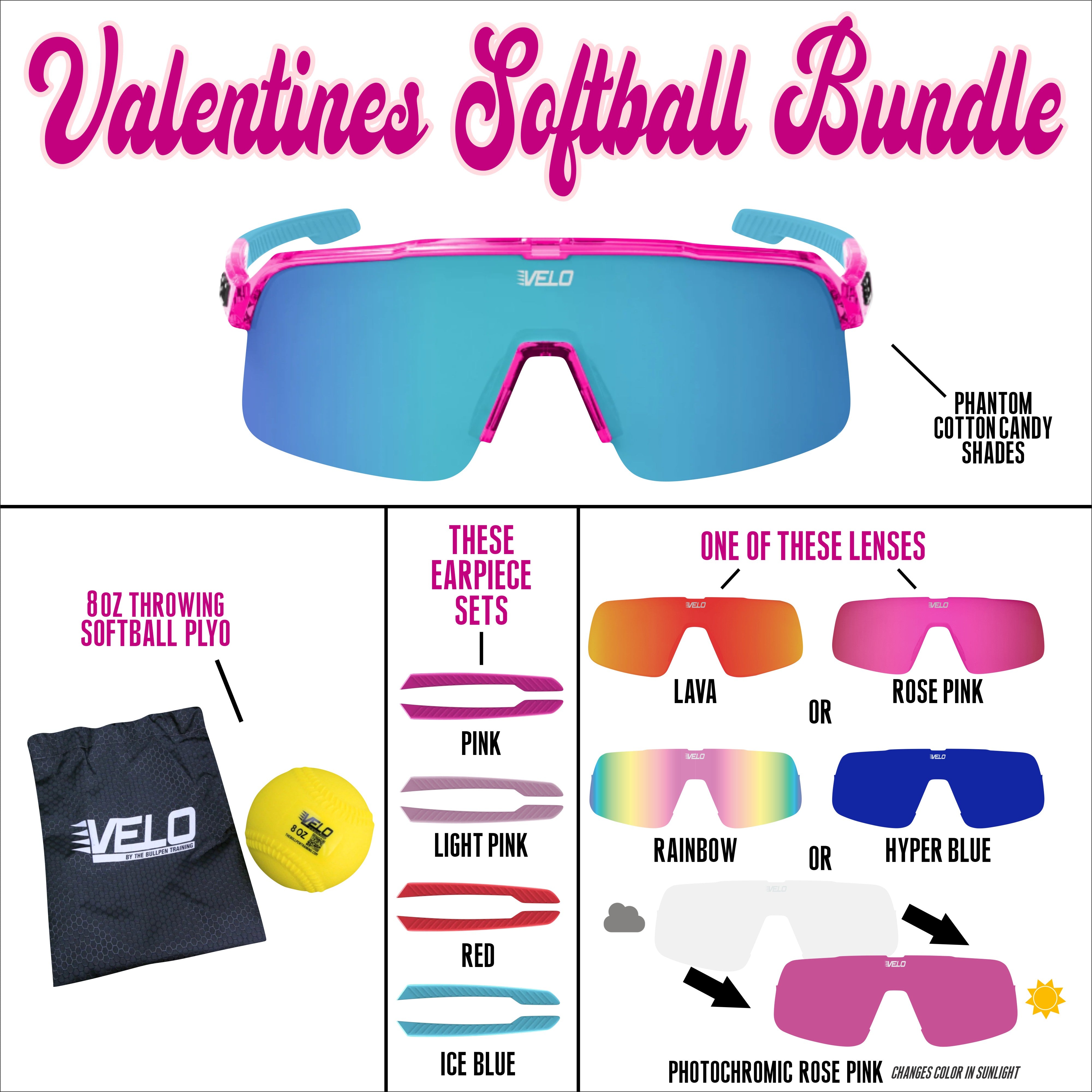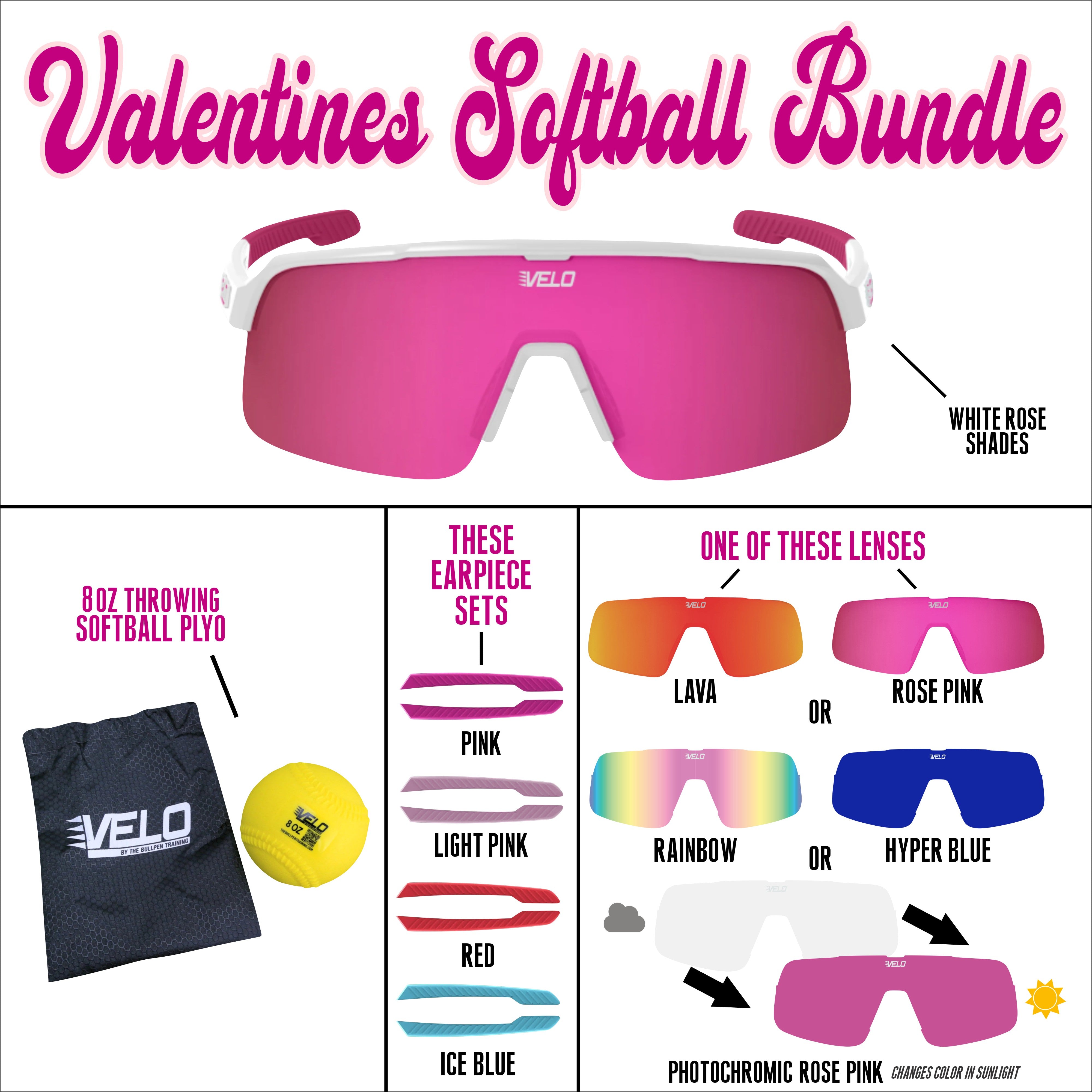 Valentines Softball Bundle - includes bonus earpiece sets, a bonus lens and a softball throwing plyo!